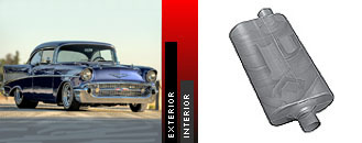 For True Dual exhaust performance where only a single exhaust system will fit such as is commonly found in classic Camaros and Firebirds, the 80 Series Cross-Flow Muffler fits transversely behind the rear axle and in front of the fuel tank, the OE placement. With single or dual inlets, the 80 Series gives excellent ground clearance, aggressive tone and dual outlets to fit muscle cars requiring this specialized fitment. Constructed of 16-gauge aluminized steel and fully MIG-welded for maximum durability.