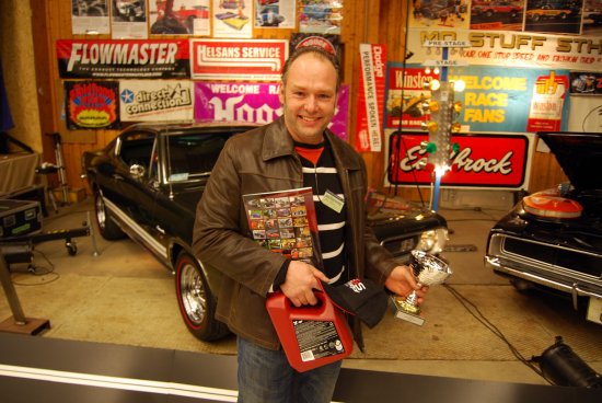 Man blir stolt som en tupp när man vinner först pris i 60-talsklassen på Bollnäs Motorrevyn 2009 med Barracudán !